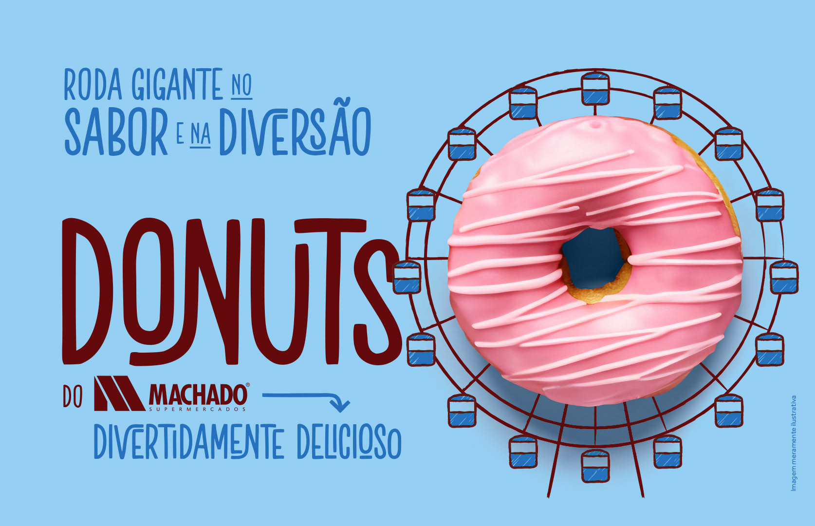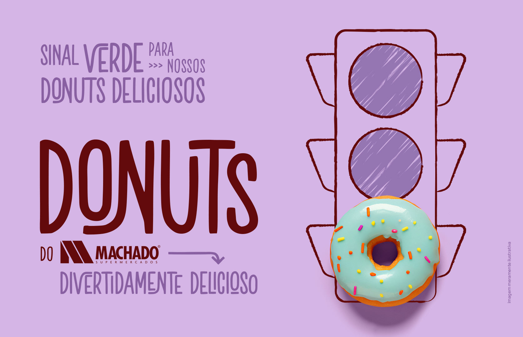 O Machado Supermercados lançou uma linha de donuts na sua seção de padaria. E com o briefing em mãos, me veio a pergunta: e se as embalagens dos Donuts do Machado fossem uma campanha impressa?